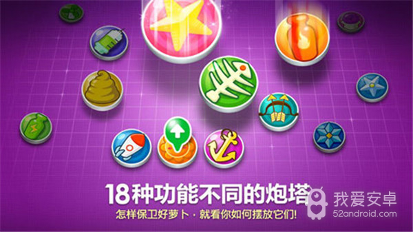 炮塔的搭配也是很有讲究的,有些炮塔是范围性攻击的,有些炮塔是减速的,有些炮塔是输出强的,所以在搭配方面就显得很重要了,当一个炮台可以打到两条路的时候,建造范围性攻击的炮台比较好,因为当一个怪血比较厚的时候,这个炮台就可以攻击到怪物两次,所以在这些地方多建造范围性的攻击炮台,作为火力的集中点。在怪物的出口地建造减速炮台,这样在第一时间减慢怪物速度以便于炮塔攻击怪物,然后在火力集中区域的地方也需要减速炮台。最后,只有了解各种炮塔的作用以及熟知即将出现哪些怪物,然后对应的摆放克制的炮塔才是获得金萝卜的关键所在。